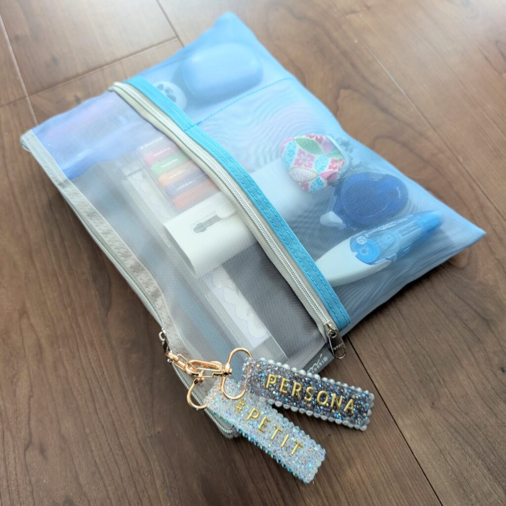 最近よく使う文具をひとつに入れたくて、Amazonで妥協なしの“ズキュン!”とくるメッシュポーチをポチ!